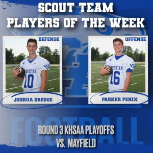 Dredge showed out in practice during one of the team’s more critical weeks of its championship run. Dredge had an incredible week of practice on the “Scout Team” in the third round of the KHSAA playoffs against Mayfield. Dredge’s efforts helped prepare the Eagles to vanquish the storied program, 35-16, in the regional championship game in Lexington.